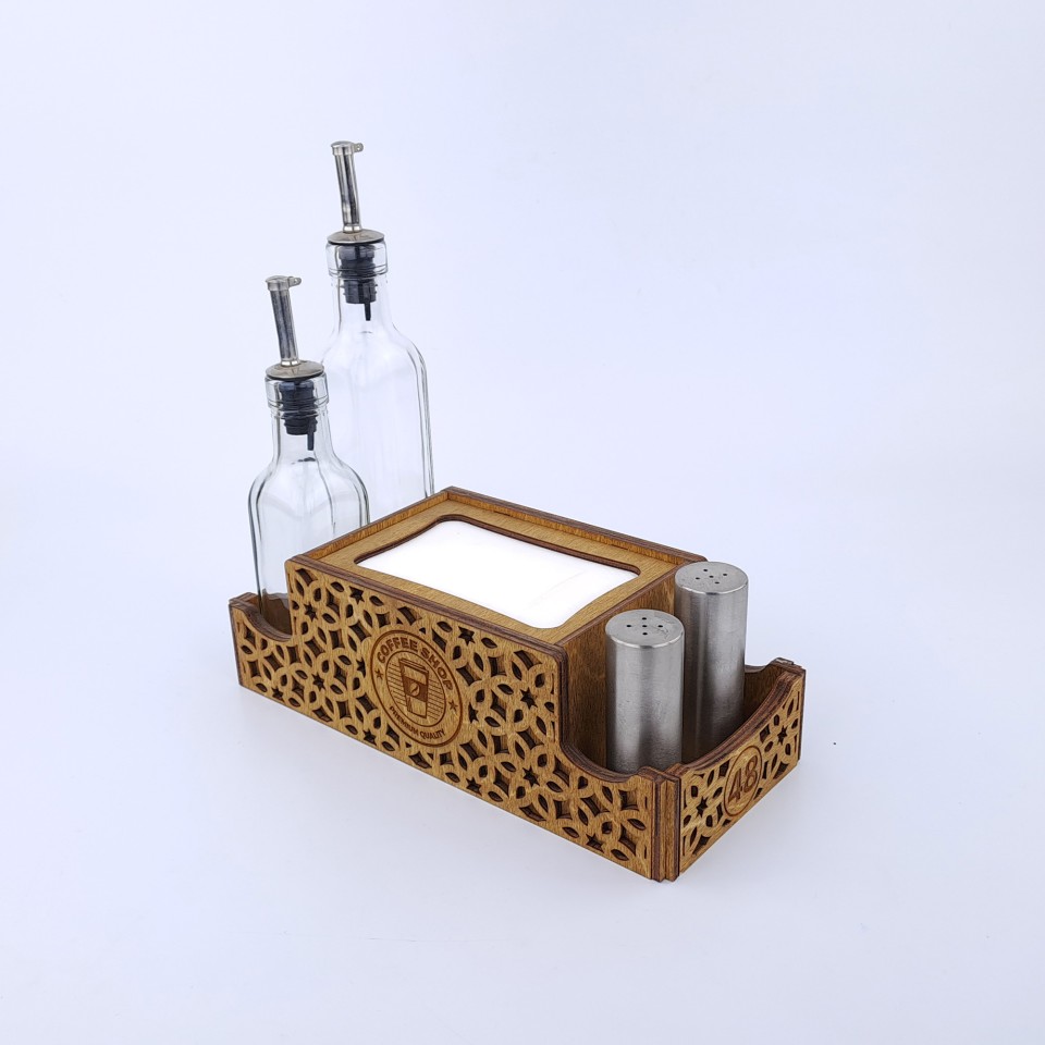 Kafe Restoran Ahşap Dispenser Peçetelik Şekerlik Sosluk Menaj Takımı Model 10938