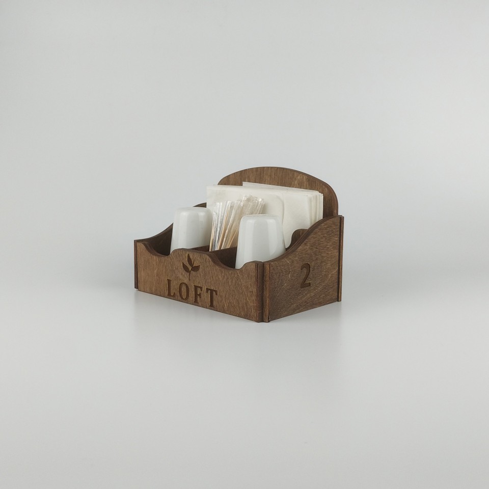 10402 - Kafe Restoran Ahşap Peçetelik Şekerlik Sosluk Menaj Takımı Model 10402