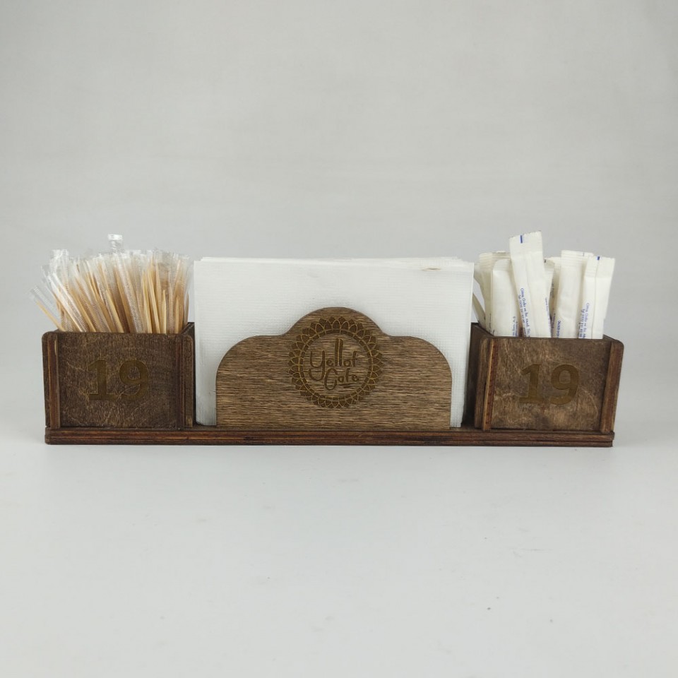 10545 - Kafe Restoran Ahşap Peçetelik Şekerlik Sosluk Menaj Takımı Model 10545
